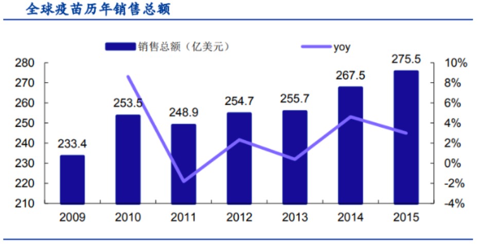 我國(guó)有45家疫苗生產(chǎn)企業(yè),可生產(chǎn)63種疫苗,預(yù)防34種傳染病,是世界上為數(shù)不多的能夠依靠自身能力解決全部計(jì)劃免疫疫苗的國(guó)家之一。從2005年到2015年的十年間,我國(guó)疫苗產(chǎn)業(yè)市場(chǎng)規(guī)模從65億元增至245億元,年均復(fù)合增長(zhǎng)率達(dá)14%。