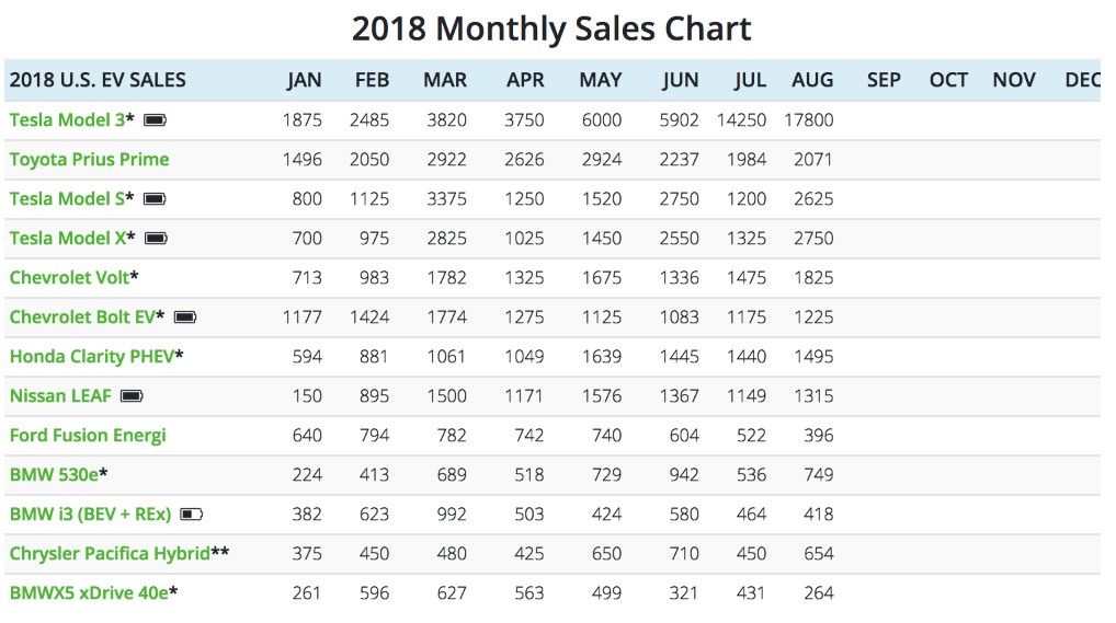 智通財經APP獲悉,據InsideEV's的數據,特斯拉的Model 3、ModelS 和Model X三車型分別名列美國8月最暢銷的電動汽車的第一位、第三位和第四位。