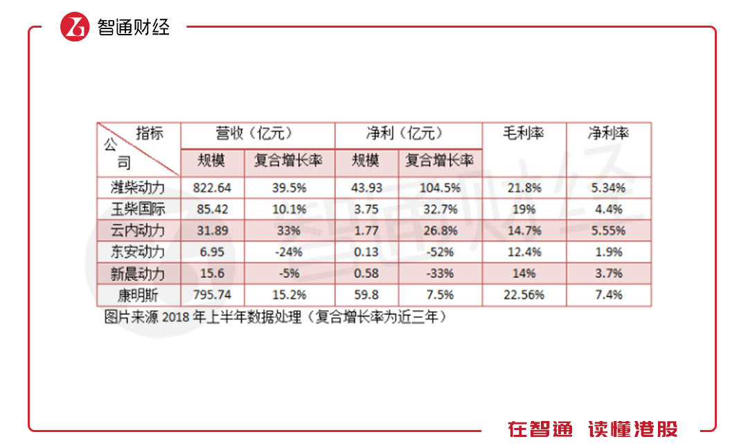 國內(nèi)的發(fā)動(dòng)機(jī)供應(yīng)市場(chǎng)高度集中,前十大供應(yīng)占據(jù)了超過7成的份額,主要為柴油機(jī)供應(yīng),適用于商用車,龍頭濰柴動(dòng)力(02338)市場(chǎng)份額最大。汽油機(jī)適用于乘用車,由于主要為內(nèi)供,市場(chǎng)數(shù)據(jù)較少。與國際龍頭康明斯相比,上半年國內(nèi)的柴油機(jī)企業(yè)賺錢能力還是較低的。