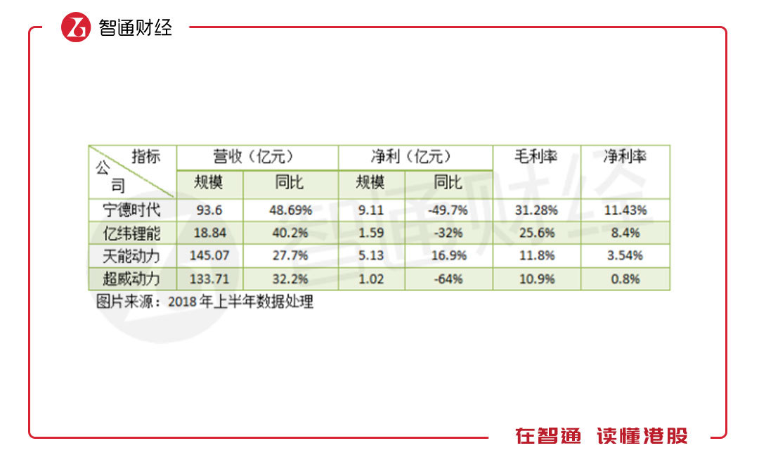 兩大鉛酸電池龍頭天能動(dòng)力(00819)和超威動(dòng)力(00951)也在積極轉(zhuǎn)型生產(chǎn)鋰動(dòng)力電池,鋰動(dòng)力電池成為國內(nèi)未來電池行業(yè)角逐的主要戰(zhàn)場(chǎng)。鋰電池的成長(zhǎng)能力及盈利能力要比鉛酸電池高,上半年,由于政策影響,鋰電行業(yè)凈利潤出現(xiàn)下滑較大,但凈利率仍遠(yuǎn)高于鉛酸電池。
