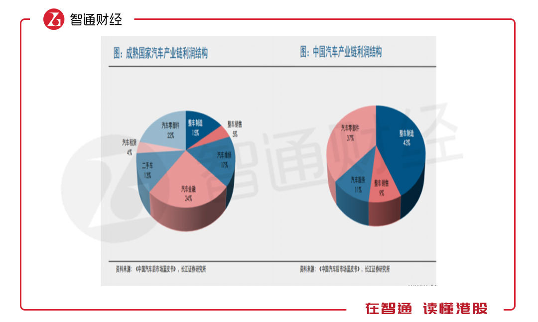 實(shí)際上,整個(gè)產(chǎn)業(yè)鏈各部分成長(zhǎng)及盈利水平不一樣,未來利潤結(jié)構(gòu)變化也會(huì)不一樣。不過根據(jù)發(fā)達(dá)國家的成長(zhǎng)路徑,整車及零部件肯定是要讓利給下游的,特別是輔助銷售環(huán)節(jié)的汽車租賃及汽車金融板塊。