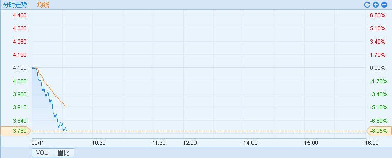 今日早盤A股鋼鐵板塊低開低走,現(xiàn)鋼鐵板塊跌超3%,馬鋼股份(600808)跌逾6%,受此影響,港股馬鞍山鋼鐵股份(00323)也跟隨下跌,截至10時02分,跌8.25%,報價3.78港元,成交額9244萬。