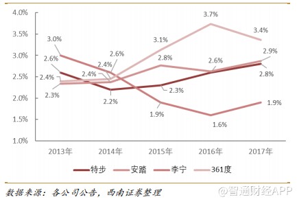 其邏輯之一是,特步在2015年開(kāi)啟變革之后,從品牌定位、產(chǎn)品、渠道、運(yùn)營(yíng)四方面進(jìn)行了全方位變革,公司從一家產(chǎn)品公司轉(zhuǎn)型為一家品牌公司。2017年末,公司用1.2億元一次性回購(gòu)2015年前生產(chǎn)的產(chǎn)品,徹底清除歷史包袱,為業(yè)績(jī)反轉(zhuǎn)奠定基礎(chǔ)。