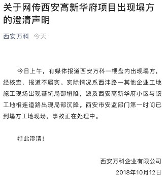 關(guān)于網(wǎng)傳萬科西安高新華府項(xiàng)目出現(xiàn)塌方的澄清聲明如下: