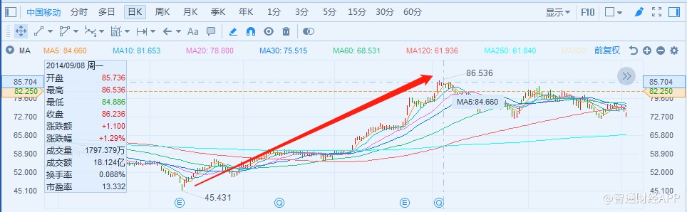 2013年12月4日,工業(yè)和信息化部正式向三大運(yùn)營商發(fā)放了4G牌照。隨后的2014年,見證了4G前期的陣痛和后期的爆發(fā)。也在這一年,中國移動股價上漲了21.32%。