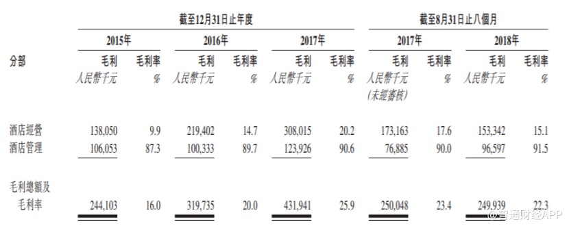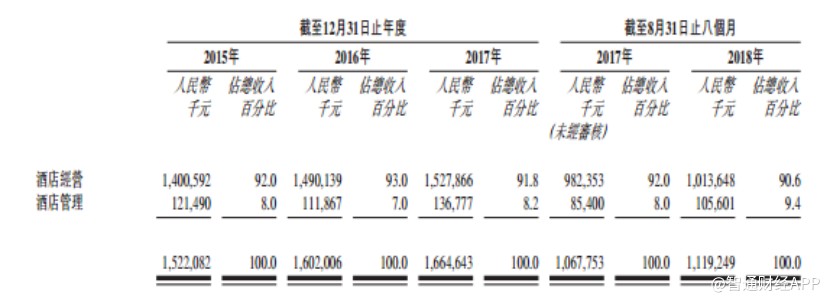招股書顯示,截至2018年8月底,公司酒店經(jīng)營業(yè)務下?lián)碛?1家酒店,其中29家租賃酒店和2家自營酒店;公司酒店管理業(yè)務下?lián)碛?09家酒店,其中96家為全方位服務管理酒店及13家特許經(jīng)營酒店。