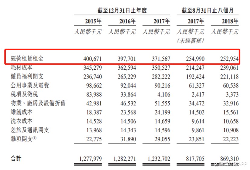 從招股書披露的公司銷售成本來看,雖然2015-2017年公司經(jīng)營租金金額持續(xù)降低,但仍然占公司銷售成本的30%以上。