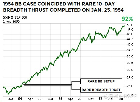 1954年,這兩種技術(shù)形態(tài)同時出現(xiàn),隨后標(biāo)普500指數(shù)走出了非常理想的升勢: