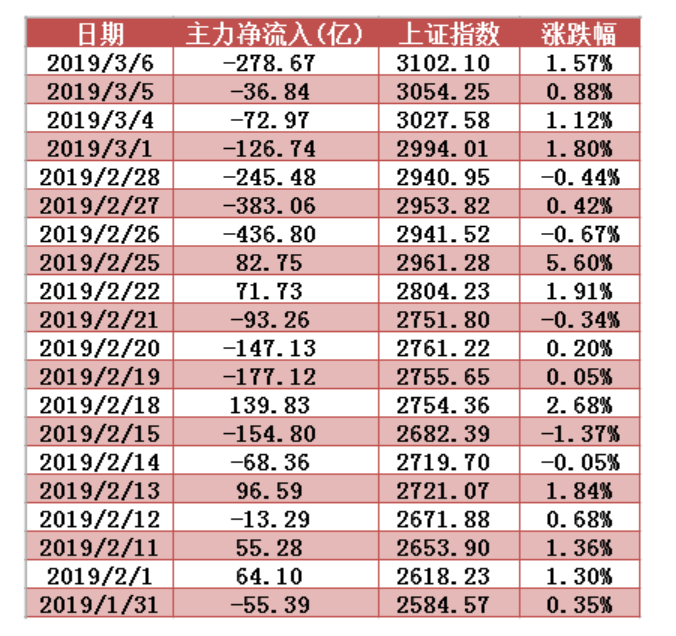 近20個交易日兩市主力資金凈流入額變動圖表: