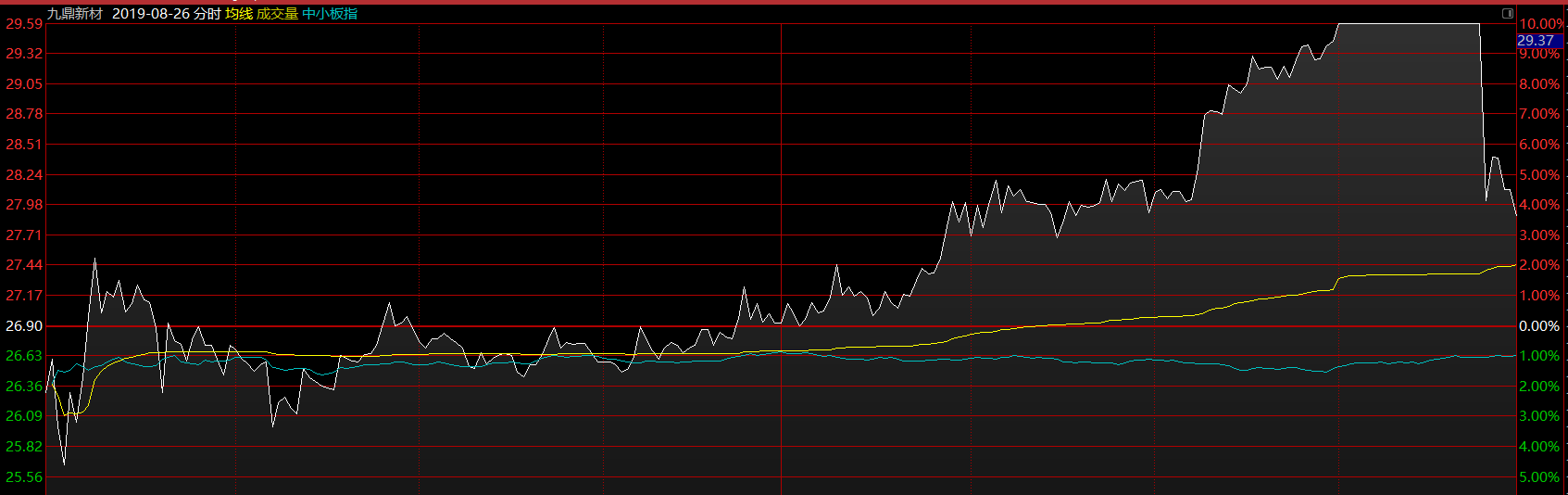 今年的市場(chǎng)有個(gè)特征,總是因?yàn)槟硞€(gè)人的一兩句話而大幅波動(dòng),好在市場(chǎng)對(duì)貿(mào)易摩擦的相關(guān)消息已逐漸變得不再敏感,消息次日市場(chǎng)跌幅也逐步減小。在周末貿(mào)易摩擦升溫消息刺激下,上周一大盤低開,但低開幅度遠(yuǎn)小于預(yù)期,市場(chǎng)也沒有出現(xiàn)恐慌的情況。尤其是高標(biāo)股九鼎新材,在前一交易日尾盤大幅分化的情況下,周一早盤僅僅微幅低開兩個(gè)點(diǎn),可以說這是一個(gè)明顯的抄底信號(hào):市場(chǎng)這里跌不下去。