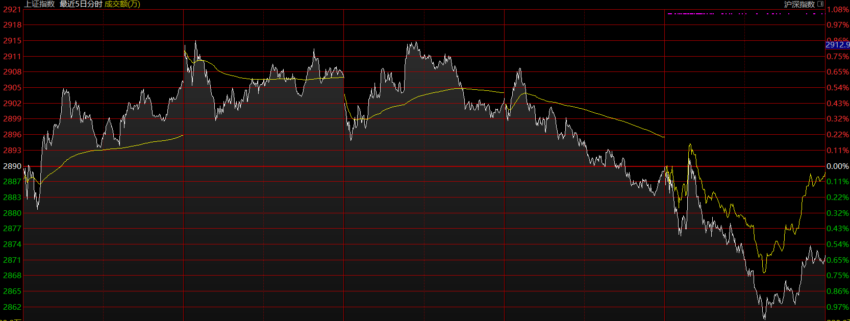 上證指數(shù)上周在等待中樞擴(kuò)展完成后破位下跌,破位力度比較小,而對結(jié)構(gòu)分解后發(fā)現(xiàn),這次大中樞的盤整背馳,第一段以五分鐘趨勢的形式完成,第二段以盤整的形式完成,且已進(jìn)入了尾聲。因此,料此輪主跌段不會(huì)太久,繼續(xù)維持在前序中樞下軌2850附近企穩(wěn)的判斷。