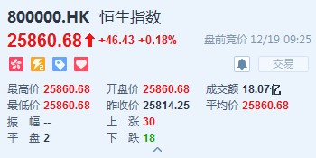 恒生指數(shù)開(kāi)盤漲0.18%,報(bào)25860.68點(diǎn)。國(guó)企指數(shù)漲0.04%,報(bào)10234.45點(diǎn)。紅籌指數(shù)漲0.2%,報(bào)4217.54點(diǎn)。大市盤前成交18.07億港元。隔夜美股微升,港股ADR偏軟。