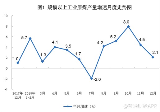 國家統(tǒng)計局今日(1月21日)公布了2018年12月份能源生產情況,數(shù)據(jù)顯示,12月份原煤產量3.2億噸,同比增長2.1%,增速比上月回落2.4個百分點,創(chuàng)下逾三年來最高,因冬季需求旺盛推動主要礦商增加生產,且一些新礦也開始上馬。