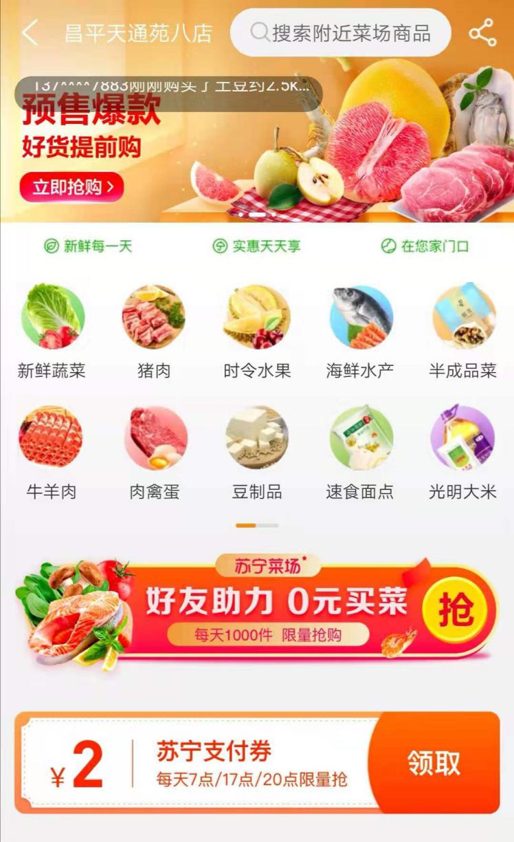 (圖:北京蘇寧菜場線上頁面)