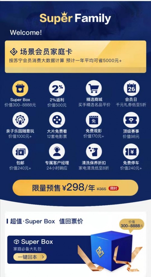 年初,蘇寧易購?fù)瞥?S UPER VIP專屬會(huì)員特權(quán),母嬰家庭只需辦理價(jià)值149元的 Super VIP會(huì)員卡,再加150元,即最高花費(fèi)299元,就能在蘇寧紅孩子游樂不限時(shí)間、不限次數(shù)的玩上一整年。貫穿全年的紅粉會(huì)員答謝會(huì),通過海量母嬰正品、專業(yè)的育嬰師服務(wù)和特色會(huì)員福利活動(dòng)圈粉超千萬。而最新升級(jí)的蘇寧Super Family會(huì)員更是以承包一家人的衣食住行為出發(fā)點(diǎn),融合了蘇寧體育、蘇寧影城、蘇寧金融、蘇寧紅孩子、蘇寧廣場等業(yè)態(tài),共12項(xiàng)特權(quán),發(fā)力會(huì)員場景零售,打造了完善的會(huì)員生態(tài)服務(wù)。