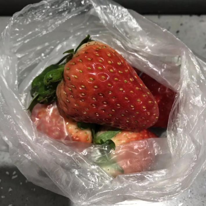 這些天,讓林濤印象最深刻的,是有一天一位老奶奶,也是他的老顧客,用保鮮袋裝了好幾個又大又紅的草莓,戴著口罩特地來到店里送給林濤?!皳?jù)說那個草莓特別貴,她自己可能也不舍得吃。”林濤當時忍不住拍了照片保存下來:“就那種時候,你會感覺,留下來,值了!”