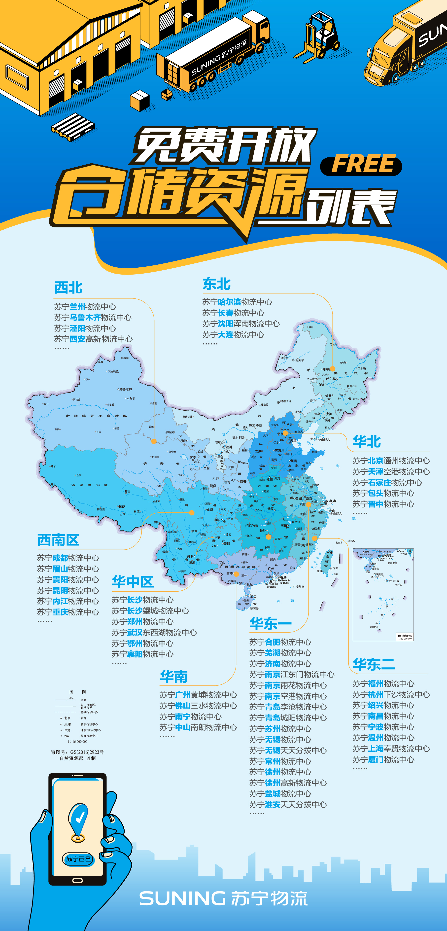 本次免費(fèi)倉(cāng)儲(chǔ)資源涉及蘇寧物流全國(guó)100+物流中心,涵蓋北京、上海、廣州、南京、成都、武漢、沈陽(yáng)、西安、天津、溫州、長(zhǎng)沙、中山、佛山、徐州、青島、哈爾濱等城市,可滿足全國(guó)絕大多數(shù)地區(qū)的相關(guān)需求。