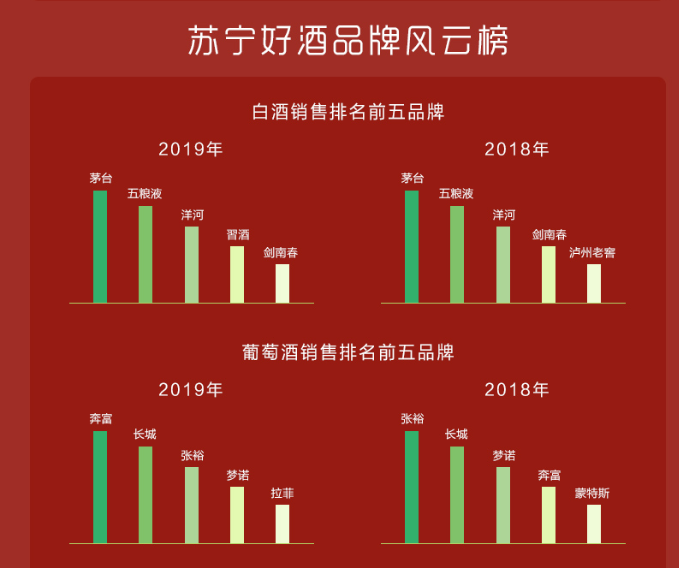 酒逢知己千杯少。2019年,蘇寧酒水好成績(jī)的取得,離不開(kāi)與貴州茅臺(tái)、五糧液、洋河、今世緣、貴州習(xí)酒、百威英博等戰(zhàn)略合作品牌的緊密合作。