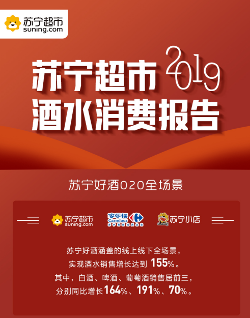 深圳新聞網(wǎng)2020年3月20日訊 昨日,蘇寧超市發(fā)布2019年度酒水消費(fèi)報(bào)告。數(shù)據(jù)顯示,2019年,蘇寧好酒全渠道銷(xiāo)售同比增長(zhǎng)155%。其中,白酒、啤酒、葡萄酒銷(xiāo)售分別同比增長(zhǎng)164%、191%、70%??v觀整年,家樂(lè)福、飛天茅臺(tái)酒、全場(chǎng)景等成2019年蘇寧酒水關(guān)鍵詞,這也進(jìn)一步凸顯了蘇寧超市酒水生態(tài)圈建設(shè)的卓越成效。