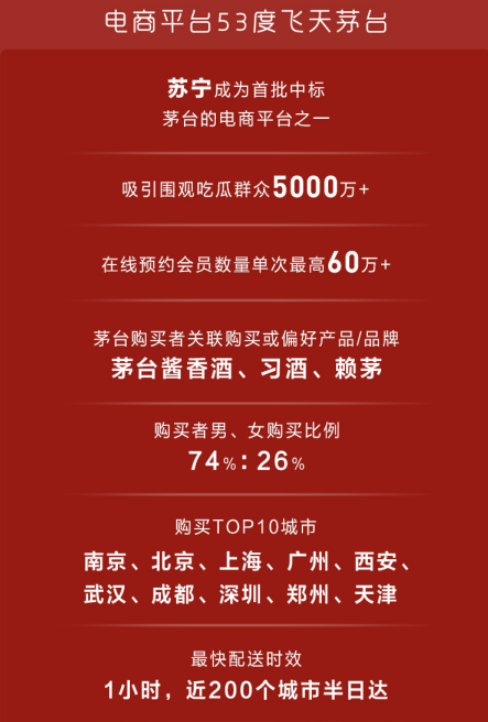 此外,蘇寧物流的半日達(dá)、次日達(dá)服務(wù),蘇寧小店的3公里最快半小時(shí)達(dá)服務(wù),也讓蘇寧酒水的配送服務(wù)優(yōu)勢(shì)明顯。
