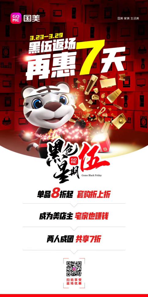 據了解,3月23日-3月29日,國美零售“黑伍”返場,再惠7天。在此期間,國美多種優(yōu)惠玩法悉數(shù)上線。用戶將不僅享受單品8折起、套購折上折的優(yōu)惠,成為美店主,還能宅家賺錢,享受商品返利。此外,還有兩人成團,共享7折等,快來國美美店廚飲專場選購吧。