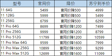 目前在蘇寧易購官網(wǎng),iPhone11 Pro Max各型號(hào)全部降價(jià)1600元,最低7999元就能入手;iPhone11 Pro降價(jià)1200元,64G版本7499元;同時(shí),iPhone11也降了500元,最低配64G版本售價(jià)4999元。此外,iPhone XR等上一代機(jī)型也有不同程度降價(jià)力度。