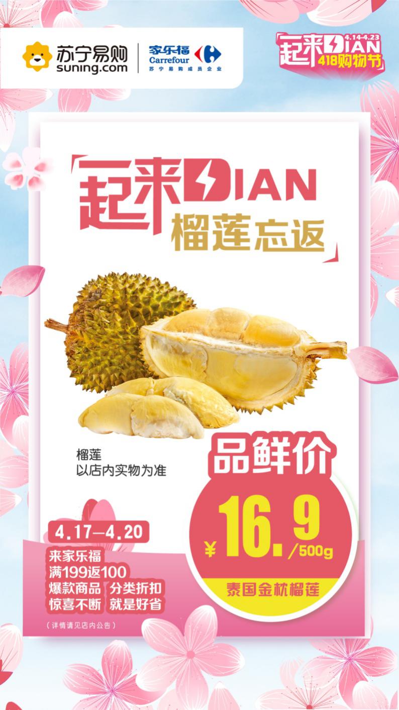 據有關方面透露,即將啟幕的“4.18一起來Dian”購物節(jié),家樂福將加碼福利,推出重磅優(yōu)惠的同時,奉上多款強勢優(yōu)質生鮮爆品,勢要擊穿底價。以“水果之王”榴蓮為例,每斤16.9元的限時品鮮價。