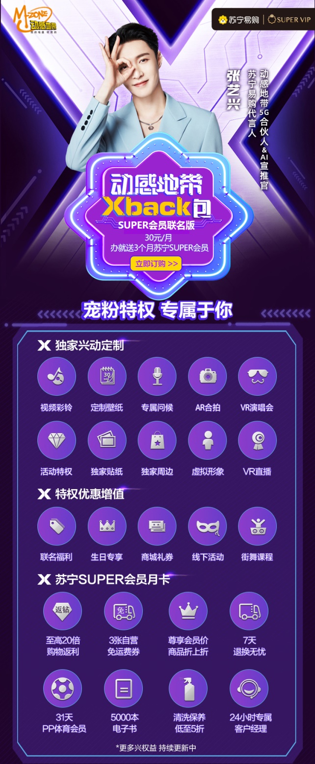 618期間張藝興成為蘇寧易購代言人,7月21日中國移動(dòng)官宣張藝興為動(dòng)感地帶5G合伙人&AI宣推官。SUPER聯(lián)名版動(dòng)感地帶Xback包在818期間推出,讓蘇寧易購和中國移動(dòng)的跨界營銷合作浮出水面,外界也更好奇,818之后,蘇寧易購和中國移動(dòng)是否還會有更大的動(dòng)作。