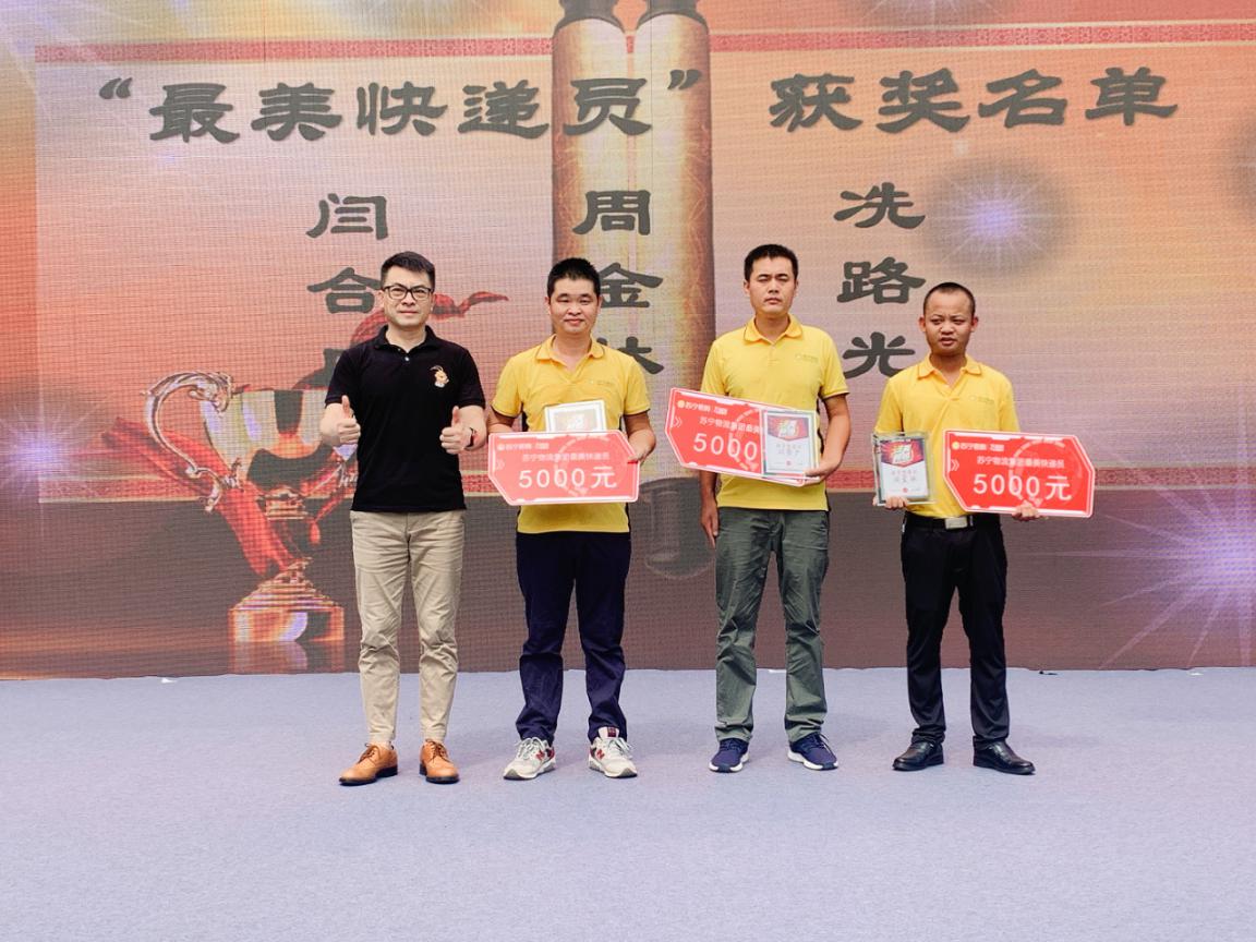 粵港蘇寧快遞員頒獎慶典于28日上午10:30舉行,蘇寧易購深圳大區(qū)家電公司總經(jīng)理彭俊、深圳大區(qū)物流公司總經(jīng)理?xiàng)畋<跋嚓P(guān)負(fù)責(zé)人等出席了此次活動。慶典活動上,彭俊表示,“本屆快遞員節(jié)主題為“進(jìn)無所懼”,喻意蘇寧快遞在2020年不懼風(fēng)浪、一往無前。今818,集團(tuán)全新升級了“專注好服務(wù)”的品牌主張,變革、創(chuàng)新、引領(lǐng),服務(wù)更是物流集團(tuán)的核心理念,快遞員節(jié)既為了致敬拼搏在一線全體遞員們,也是表達(dá)蘇寧快人堅(jiān)定迎接挑戰(zhàn)、開啟新征程的勇氣?!?/p>