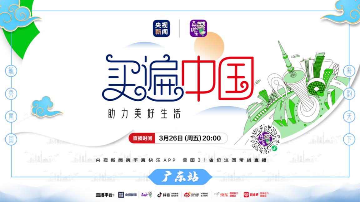 大潮起珠江,弄潮正當時。3月嶺南百花盛放,城市地標廣州塔上珠江溫潤的氣息撲面而來,“買遍中國”廣東站將于3月26日,在這個城市新中軸線與珠江景觀軸交匯處正式開啟,全國人民都可通過真快樂APP、央視新聞APP、央視新聞抖音官方賬號、京東及拼多多國美官方旗艦店等平臺觀看直播,共同領略嶺南特色、廣府傳承。