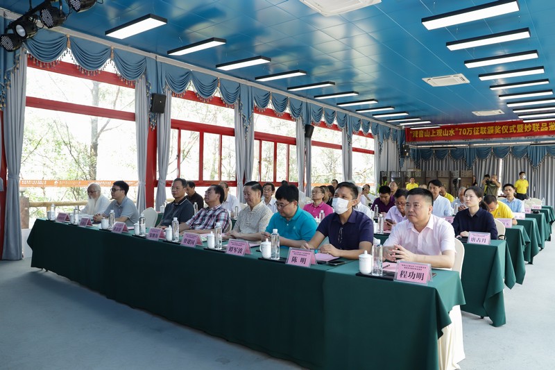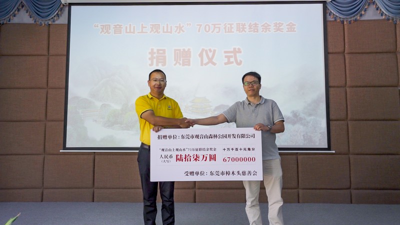 見圳客戶端·深圳新聞網(wǎng)2021年5月18日訊(記者 常軍平)“觀音山上觀山水”70萬征聯(lián)活動(dòng)終有結(jié)果,評(píng)選出15句優(yōu)秀下聯(lián),最佳下聯(lián)空缺,并于5月17日在東莞觀音山舉行了頒獎(jiǎng)儀式及妙聯(lián)品鑒座談會(huì)?;顒?dòng)現(xiàn)場(chǎng),楹聯(lián)家們雅聚一堂,共同見證了本次征聯(lián)活動(dòng)優(yōu)秀獎(jiǎng)的頒出。以楹聯(lián)為媒,進(jìn)行交流互動(dòng)?;顒?dòng)期間,組委會(huì)代表東莞觀音山將結(jié)余款項(xiàng)67萬元悉數(shù)捐給東莞樟木頭鎮(zhèn)慈善會(huì)。鑒于觀音山在推動(dòng)楹聯(lián)文化的傳承發(fā)展做出的突出貢獻(xiàn),被中國楹聯(lián)學(xué)會(huì)授予“中國楹聯(lián)文化名山”稱號(hào)。