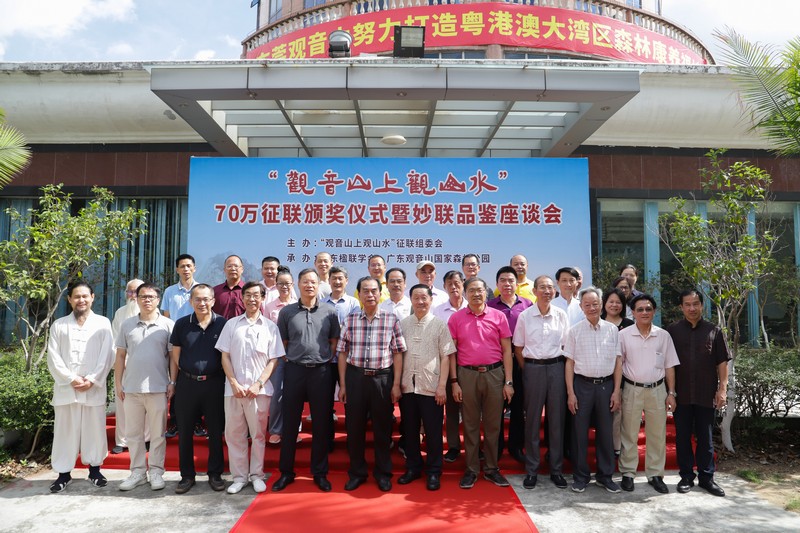 為尋求最佳下聯(lián),以壯觀音山景區(qū)山門,2019年11月7日由廣東楹聯(lián)學(xué)會(huì)與廣東觀音山國家森林公園共同推出70萬征集“觀音山上觀山水”最佳下聯(lián)活動(dòng)。本次征聯(lián)活動(dòng)面向全球展開,一經(jīng)推出,受到廣泛關(guān)注和投稿參與。
