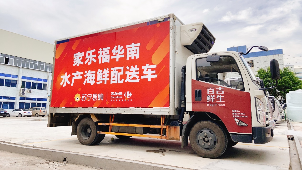 (圖:蘇寧家樂福水產(chǎn)海鮮配送車把鮮活海鮮從山河湖海送到百姓餐桌)