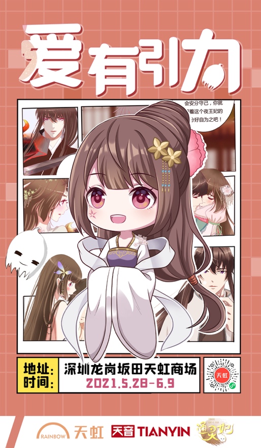 坂田天虹《通靈妃 》漫展時(shí)間到6月9日,參與闖關(guān)活動(dòng)還能獲得天虹和天音互動(dòng)準(zhǔn)備的精美禮品。