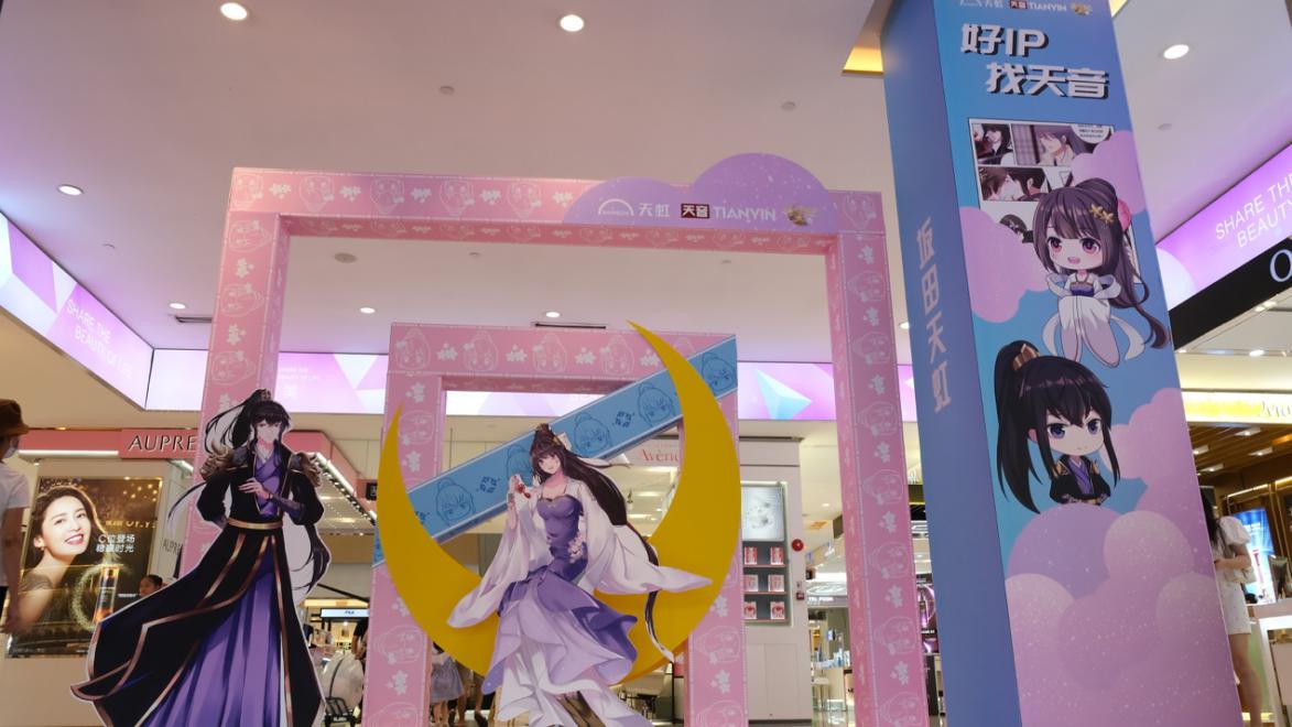 坂田天虹正門(mén)設(shè)有通靈妃打卡點(diǎn),側(cè)門(mén)布置了通靈妃漫畫(huà)墻,喜歡通靈妃的小伙伴可以線下看漫畫(huà)啦!在三樓和四樓也有千云兮和夜幽冥等你來(lái)打卡哦!