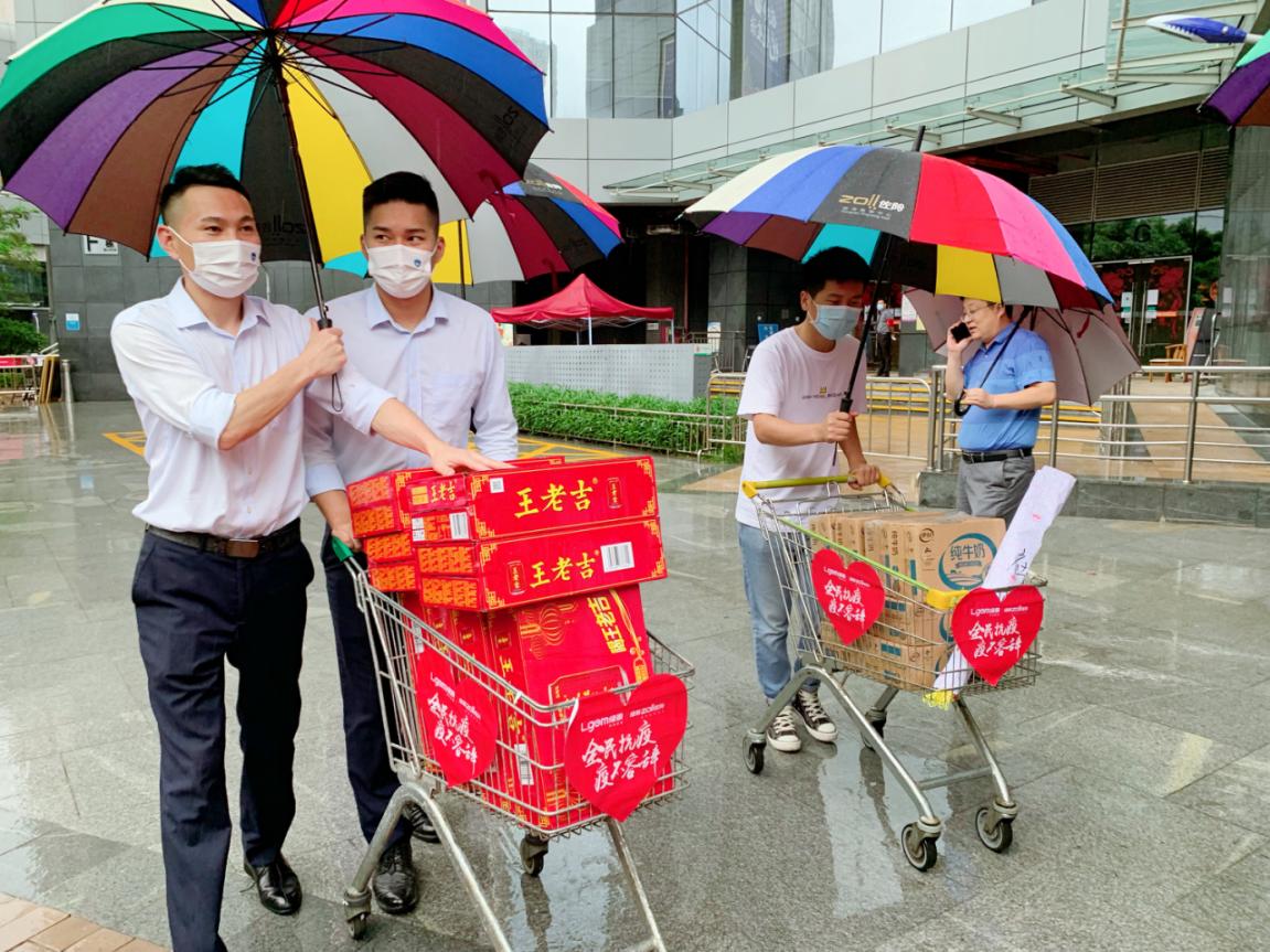 上午9點(diǎn),深圳正下著暴雨,綠景佐阾虹灣工作人員開始忙碌著“全民抗疫,疫不容辭”公益活動準(zhǔn)備工作,各贊助商戶也陸陸續(xù)續(xù)把捐贈的愛心物資,拿到現(xiàn)場,經(jīng)過大家的共同努力現(xiàn)場逐漸成型,靜待抗疫工作者前往領(lǐng)取。
