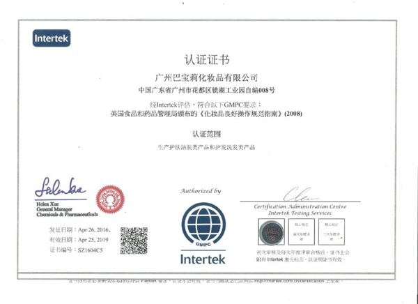 蔻斯汀于2012獲得GMPC(美國(guó)、歐盟、東盟)認(rèn)證