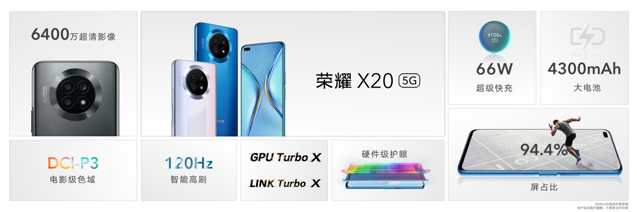 榮耀X20,120Hz超窄邊全面屏+66W超級快充
