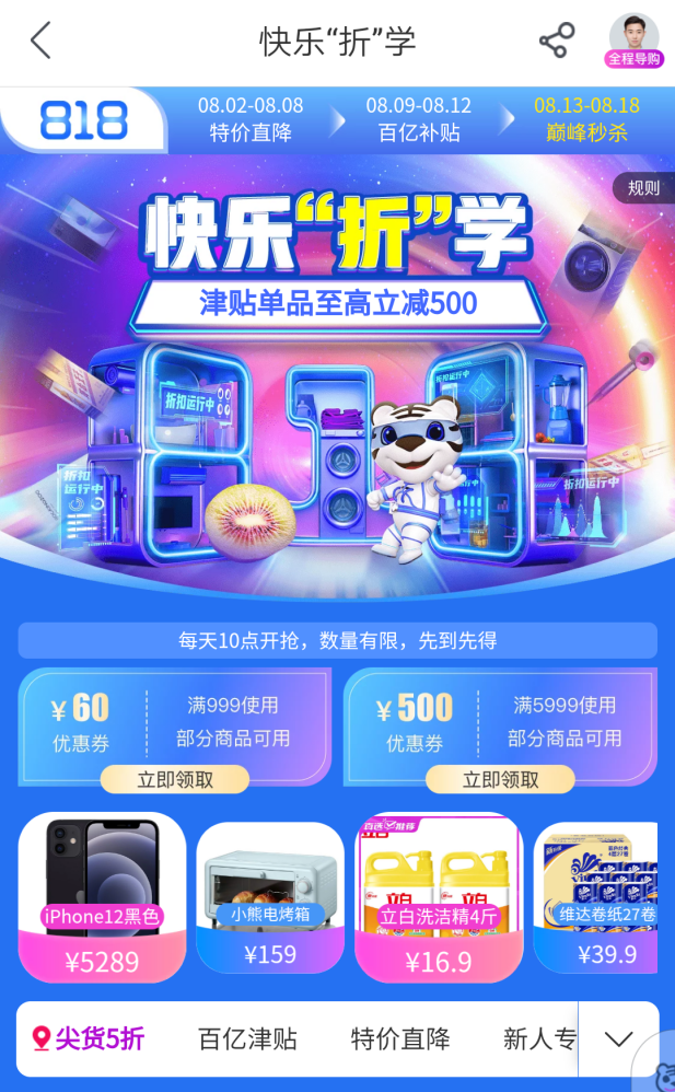 以818大促為例,8月12日至18日期間,“真快樂”以“特價直降”“百億津貼”和“巔峰秒殺”三重活動讓利消費者,一重更比一重優(yōu)惠?;顒痈@采w食品酒水、服飾鞋包、家居家裝、日用百貨、母嬰玩具、美妝個護、家用電器等全品類品質(zhì)好物。與此同時,消費者不僅可以享受“真快樂”提供的折扣優(yōu)惠,還可以通過國美“折上折A PP”領(lǐng)券,再次享受優(yōu)惠,實現(xiàn)折上再折,折上再減。無需費心拼單、湊單,一鍵領(lǐng)取優(yōu)惠券,折扣即可到手。