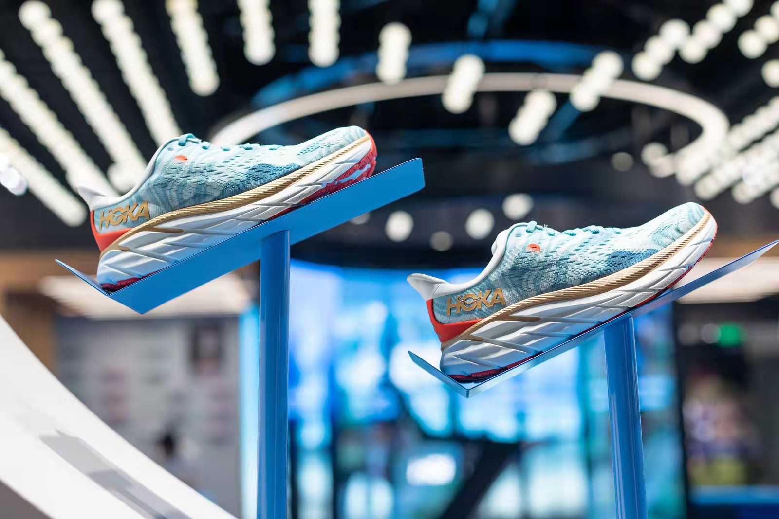 此外,沿襲品牌體驗店一直以來別具一格的設(shè)計風(fēng)格,華南首家品牌直營體驗店以“飛行”為設(shè)計主題,呈現(xiàn)活力與輕盈感,搭配頂部標(biāo)志性的“飛鳥”燈光群的律動,營造出飛越天際的自由氛圍。不僅如此,店內(nèi)還設(shè)置了跑步機體驗區(qū)以及跑者試穿體驗區(qū)等貼心的體驗空間。跑者在購物前,便可率先在店內(nèi)體驗運動的樂趣,享受HOKA所打造的創(chuàng)新跑步體驗。