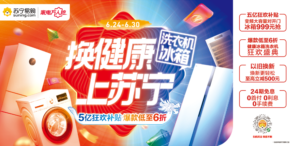 正值北方暑熱、南方梅雨季節(jié),蘇寧易購精準(zhǔn)洞察消費(fèi)者換新需求,延續(xù)618年中大促熱度,于6月24日 -6月30日推出萬人搶冰洗活動(dòng)。