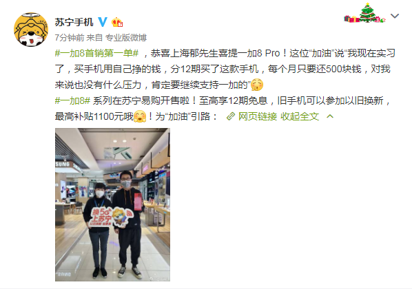 近日,@蘇寧手機(jī)在微博進(jìn)行官宣,蘇寧易購(gòu)與一加共同簽署5G戰(zhàn)略合作協(xié)議,強(qiáng)強(qiáng)聯(lián)合,推動(dòng)5G普及。