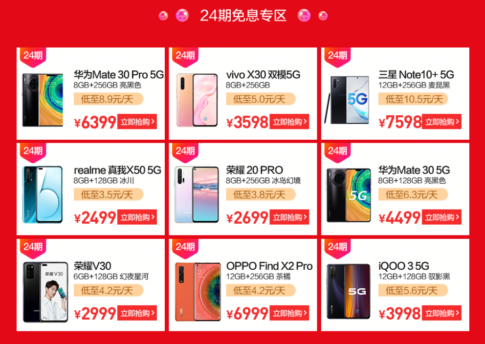 今日,蘇寧5G手機(jī)節(jié)正式迎來開門紅,開啟5G手機(jī)迄今為止最大力度的免息專場,5G手機(jī)最低每天只需3.5元即可入手。