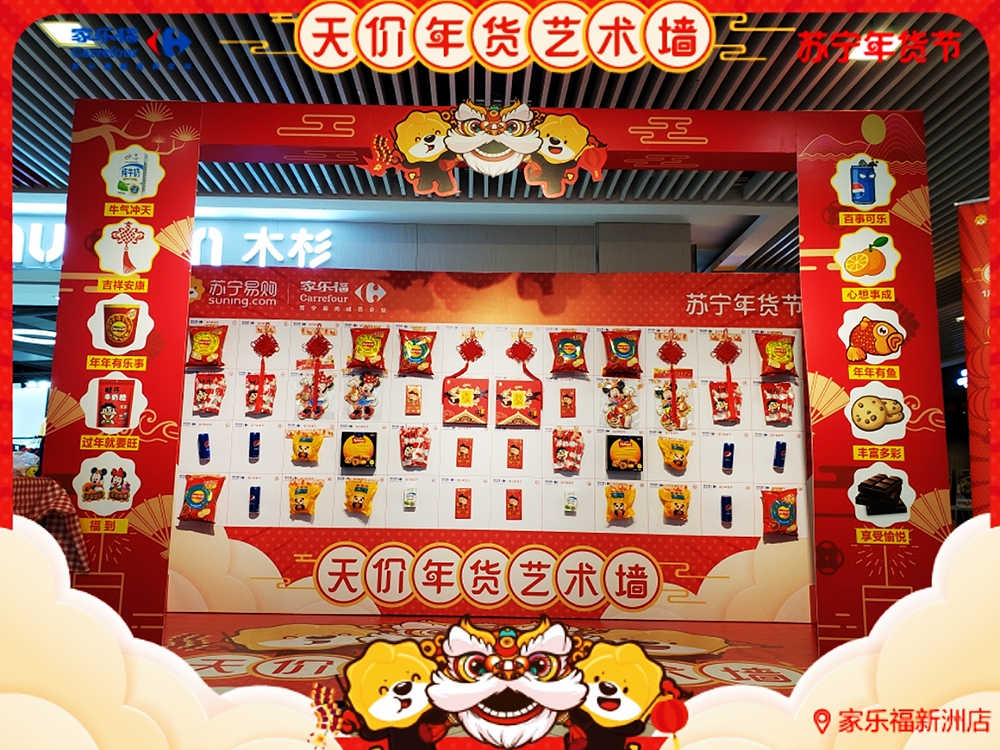蘇寧易購聯(lián)合家樂福將“天價年貨藝術(shù)墻”引進(jìn)國內(nèi),在1月16日至1月18日登陸深圳家樂福新洲店。