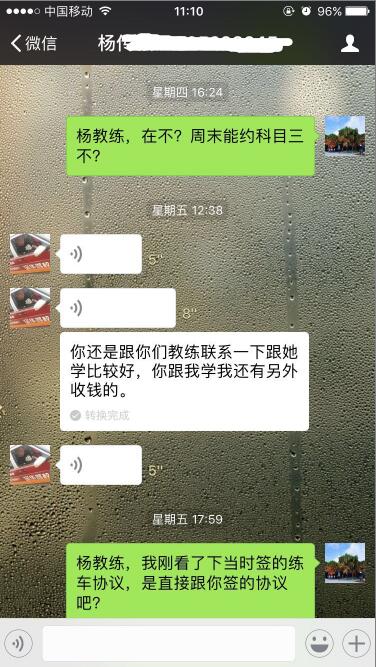2017年8月,陳先生與寶華駕校教練員楊某銀簽《駕駛員培訓(xùn)合同》,并支付了全款培訓(xùn)費(fèi)用8000元(見微信截圖)。2018年1月,陳先生通過科目二考試后,與楊某預(yù)約科目三考試。楊某提出要再次收費(fèi)(詳見聊天記錄)。陳先生與楊某溝通無效后,向該教練掛靠的寶華駕校投訴維權(quán),寶華駕校反應(yīng)“其一,駕校不接收學(xué)員不與學(xué)員簽合同;其二,教練的投訴先調(diào)查了解”,后續(xù)再無反饋。