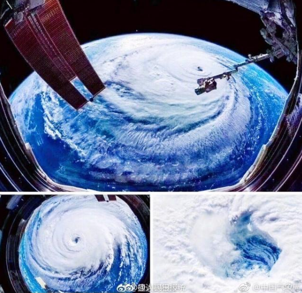 中國氣象局今日上午通過微博辟謠稱,這幾張圖片是NASA宇航員在太空拍攝到的颶風(fēng)佛羅倫薩,不是“山竹”。