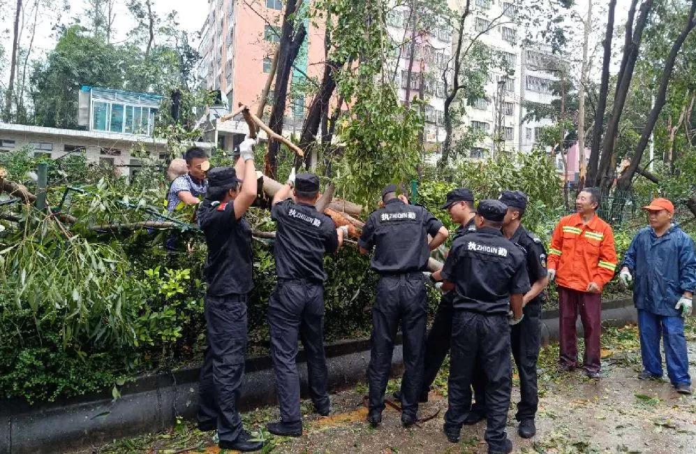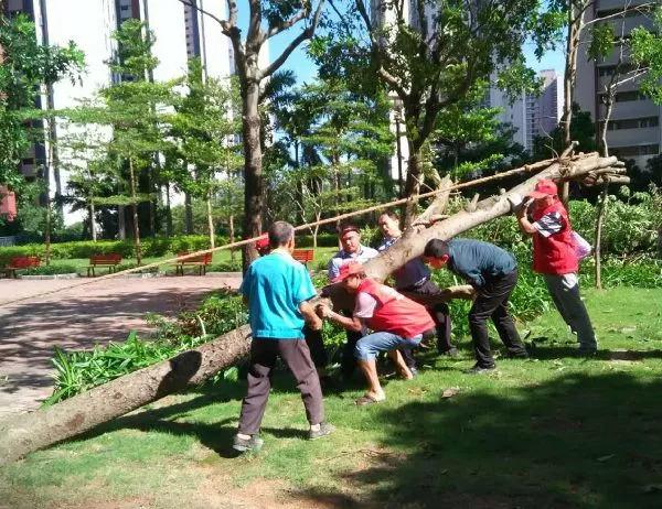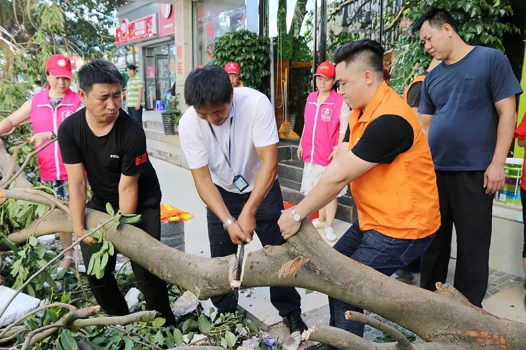 龍華街道工作人員與義工協(xié)力處理倒伏樹木