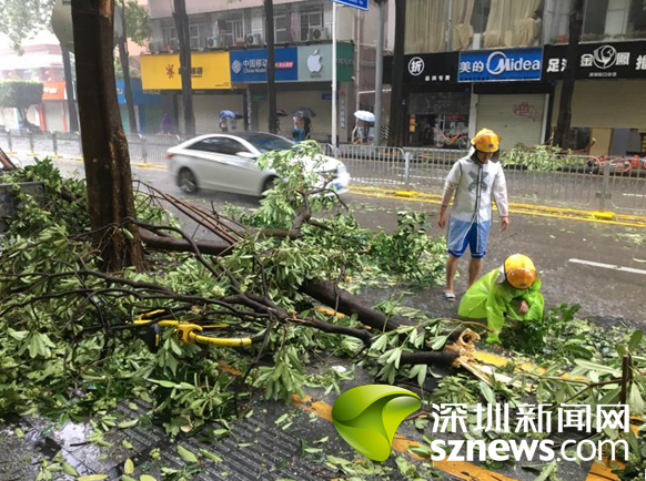 9月16日上午,蛇口街道南水社區(qū)黨委書記、婦聯(lián)主席李淑文,冒著可能被樹倒塌木砸傷的危險(xiǎn),浸泡在沒(méi)膝的雨水中幾個(gè)小時(shí)清理臺(tái)風(fēng)刮落路面的樹枝,讓來(lái)往車輛順利通行。