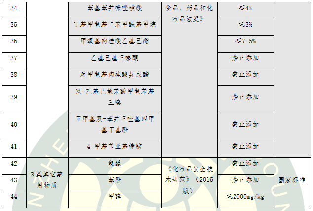 表4.15類化學(xué)防曬劑標準要求比對及評價結(jié)果
