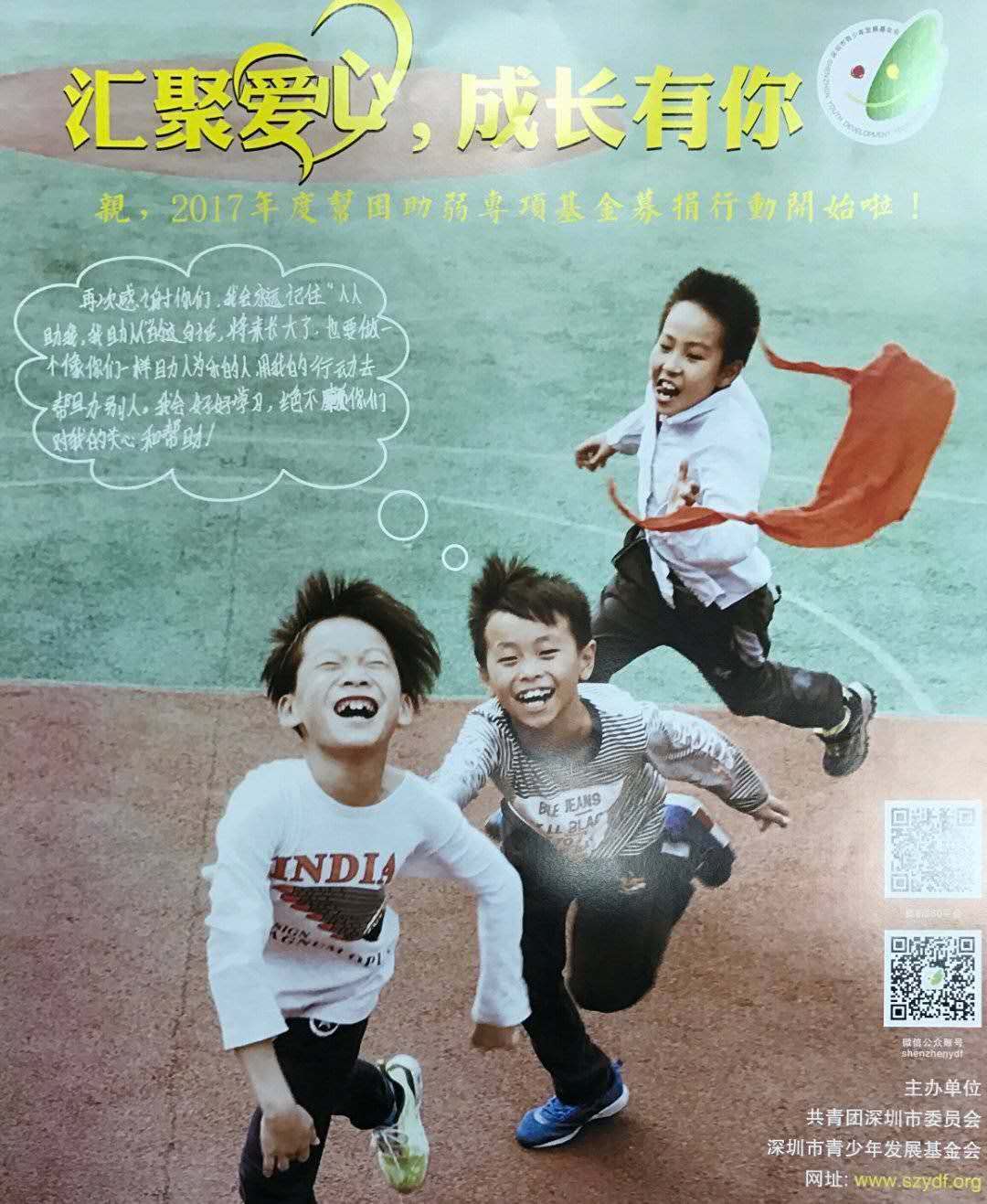 為關(guān)心關(guān)愛青少年健康成長,營造樂觀、積極向上的社會(huì)氛圍,深圳農(nóng)商行發(fā)起了“匯聚愛心成長有你”的公益愛心活動(dòng),號(hào)召全行向2017年度深圳市青少年幫困助弱專項(xiàng)基金進(jìn)行愛心捐助?;顒?dòng)得到了全行上下的大力支持,全行共募集善款人民幣221156.66元。青基會(huì)對(duì)深圳農(nóng)商行員工的善舉表示了深深的謝意,并期待與深圳農(nóng)商行開展更廣泛、更深入的公益活動(dòng)合作。